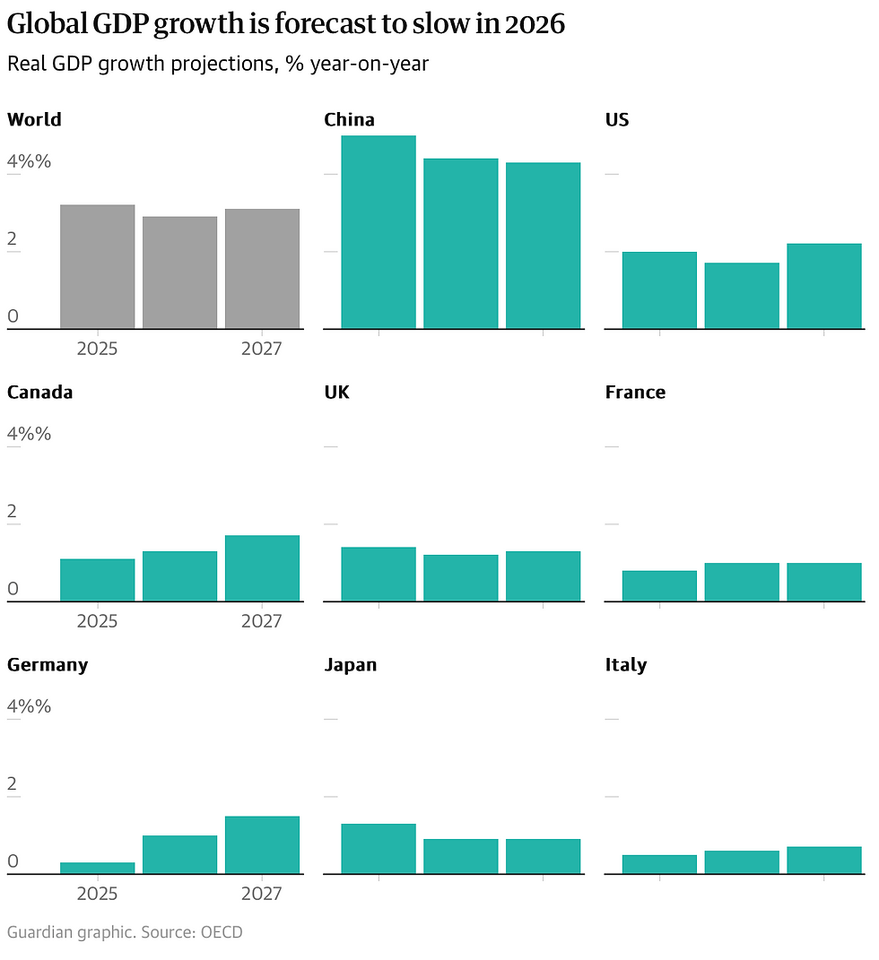今年の世界経済は、危惧されていたよりも耐久力を示し、むしろ着実に成長したと言える中で、世界各国の中央銀行が金利引き下げに舵取りをしているものの、コロナ感染症期以前の超低金利には遠く及ばない水準で、2026年の経済成長は一定程度減速すると見込まれている。
